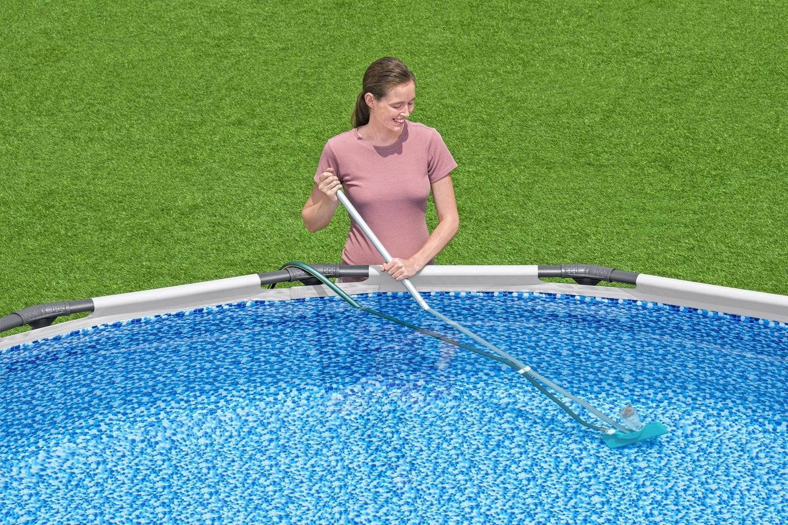 Ovaj set je savršen za bazene promjera do 396 cm i čini održavanje bazena jednostavnim kao nikad prije! Lagana drška prikladna je kako za nastavak venturi usisivača tako i za mrežicu, omogućavajući udobno čišćenje.