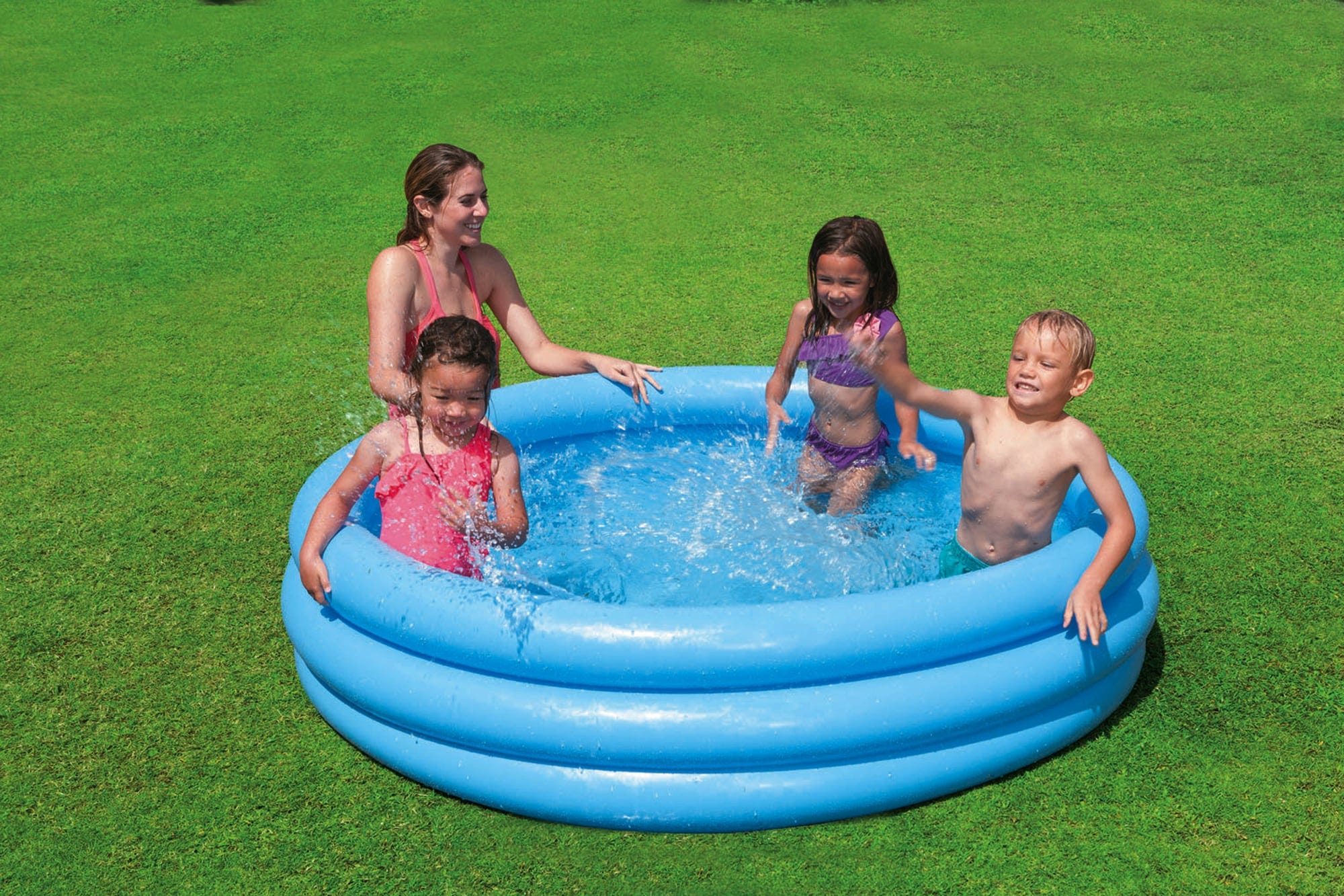 Uživanje u vodi za najmlađe garantirano je s bazenom 3-Ring-Pool Crystal Blue. Sa svojim dimenzijama Ø 168 x 38 cm, ovaj bazen je savršena igračka za djecu. 3 zračna prstena osiguravaju stabilnost i sigurnost. Kapacitet bazena je 481 l pri punjenju s 29 cm vode. Bazen je prikladan za djecu od 3 godine nadalje.