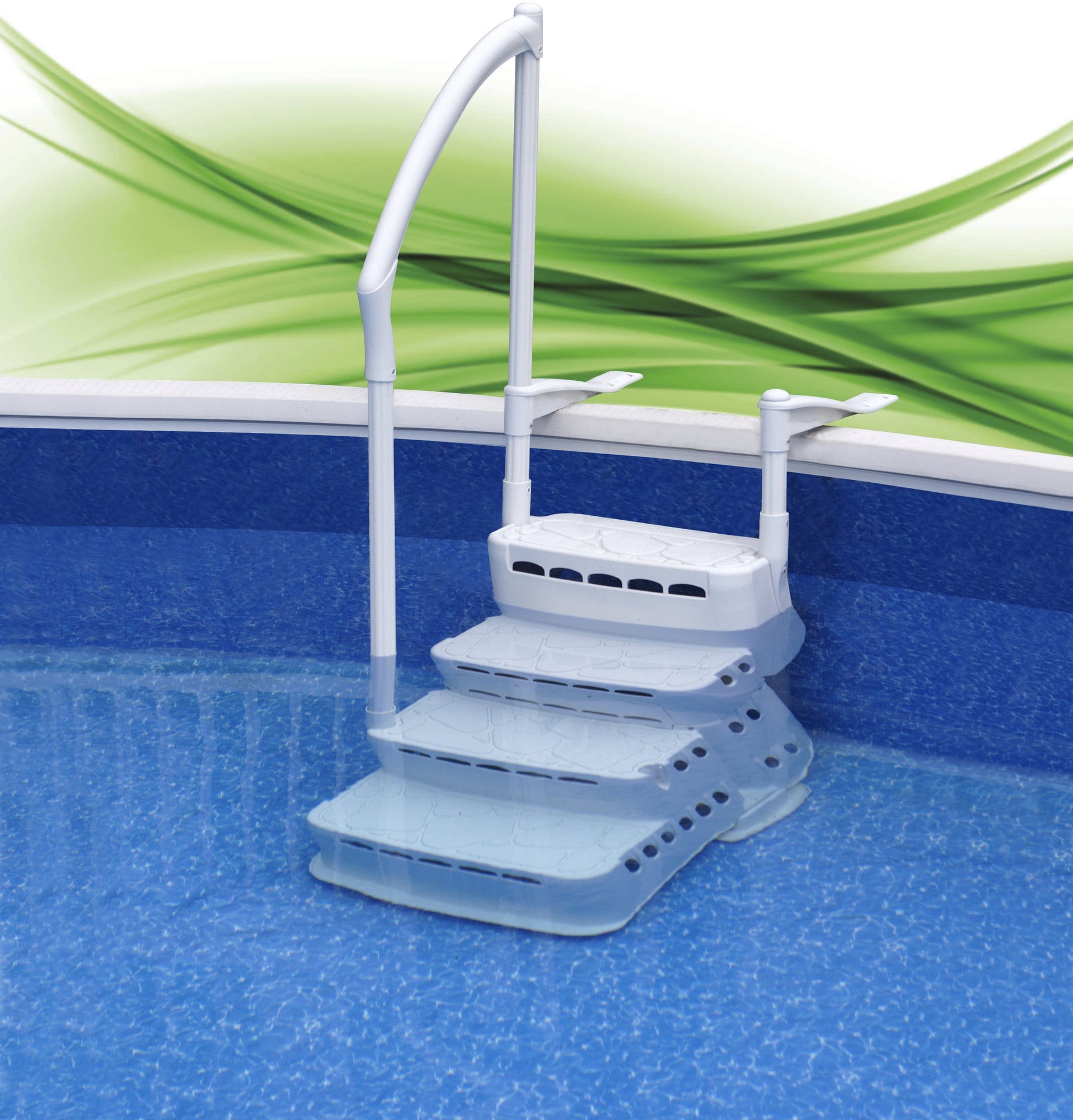 Ugodno ulazak i izlazak, to je moguće s ugradnim stepenicama PVC Komfort 2. Idealne su za naknadnu ugradnju i mogu se koristiti za bazene s visinom od 1,20 - 1,35m.