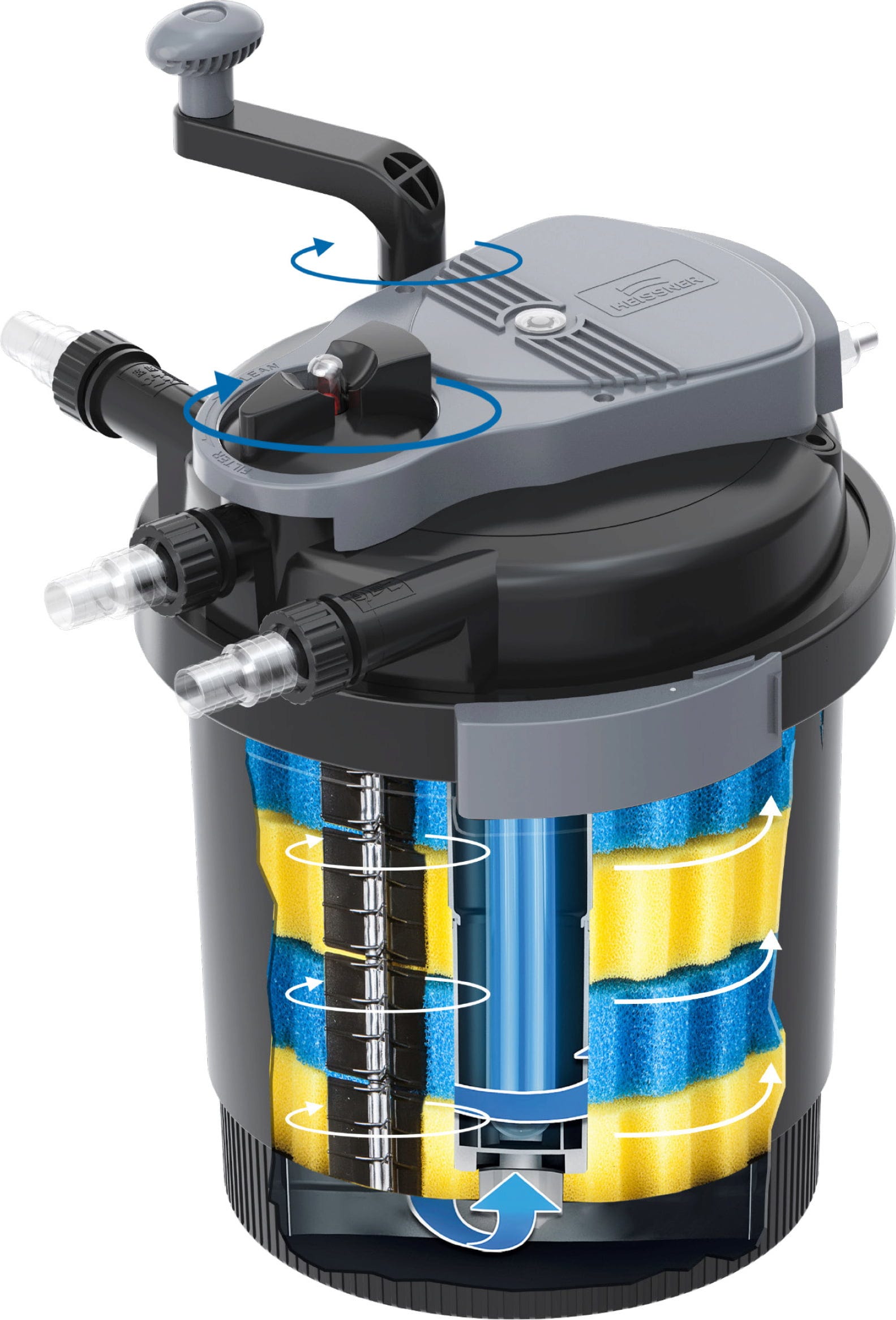 • Nyomásszűrő UVC-tisztítóval (7 W) és visszamosó funkcióval