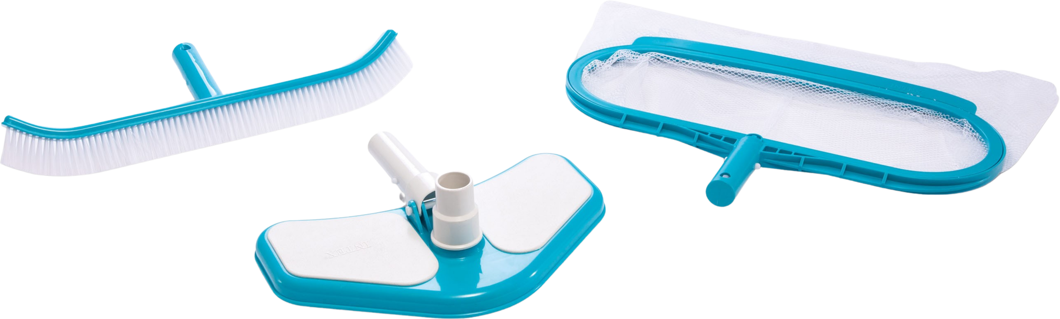 Az INTEX Deluxe tisztítószett 3 professzionális tartozékot kínál a medence és a medencevíz tisztán tartásához nagy műszaki ráfordítás nélkül. A csomag tartalma egy aljzati merítőháló, egy ívelt medencekefe és egy kézi porszívófej.