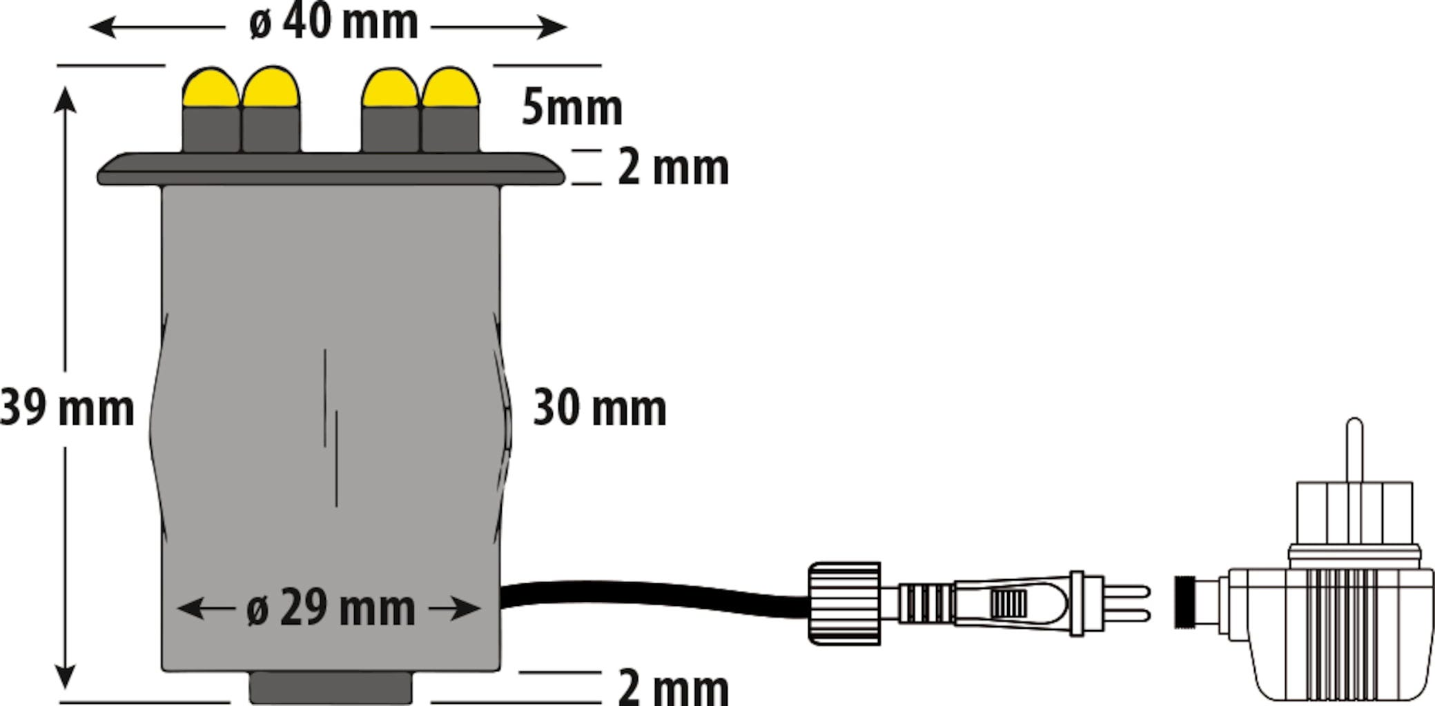 Il compatto anello LED subacqueo a 6 punti di HEISSNER consente di creare un'illuminazione d'atmosfera per pietre sorgive e giochi d'acqua grazie a una luce bianco caldo a basso consumo energetico. Con un diametro della scocca di 30 mm, l'unità si inserisce con precisione nei fori standard da 32 mm delle fontane in pietra. Il lungo cavo di collegamento da 10 metri permette un posizionamento flessibile all'esterno. Il trasformatore di sicurezza per esterni incluso garantisce un funzionamento affidabile con una minima generazione di calore, mentre la struttura robusta ne consente l'utilizzo vicino e direttamente nell'acqua.