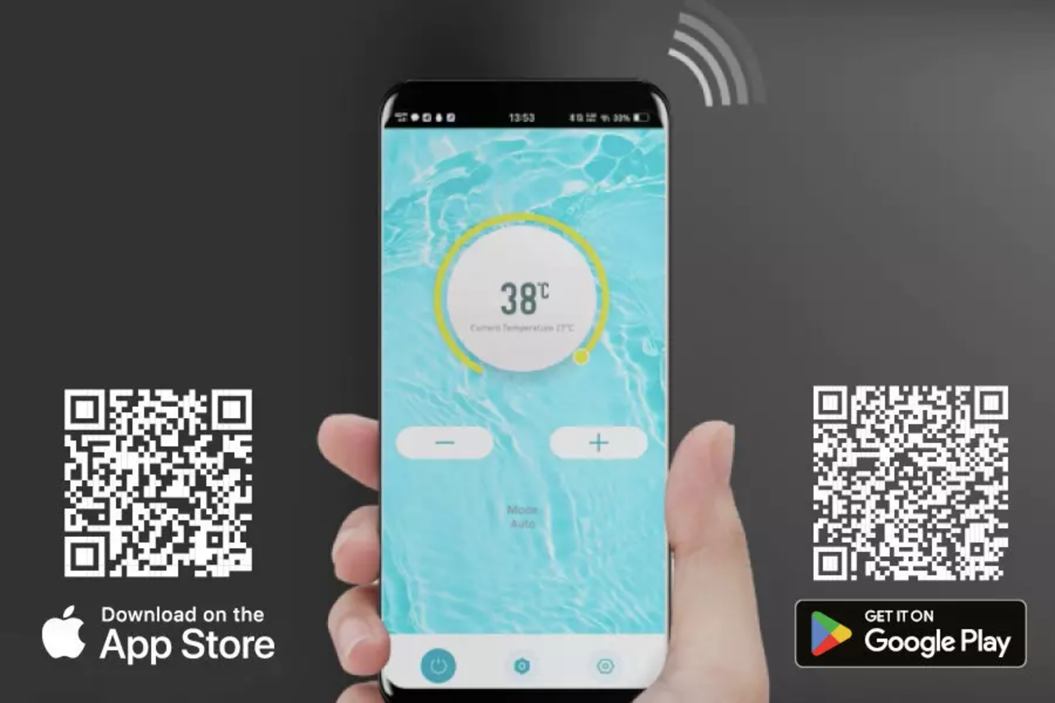 La pompa di calore Silent 9 può essere comodamente controllata tramite l'app (iOS o Android). È adatta anche per piscine con acqua salata (fino a una concentrazione di sale dello 0,5%) e funziona in modo ecologico utilizzando il refrigerante R290. Con Silent 9 , nulla ostacola il relax nella tua piscina riscaldata.