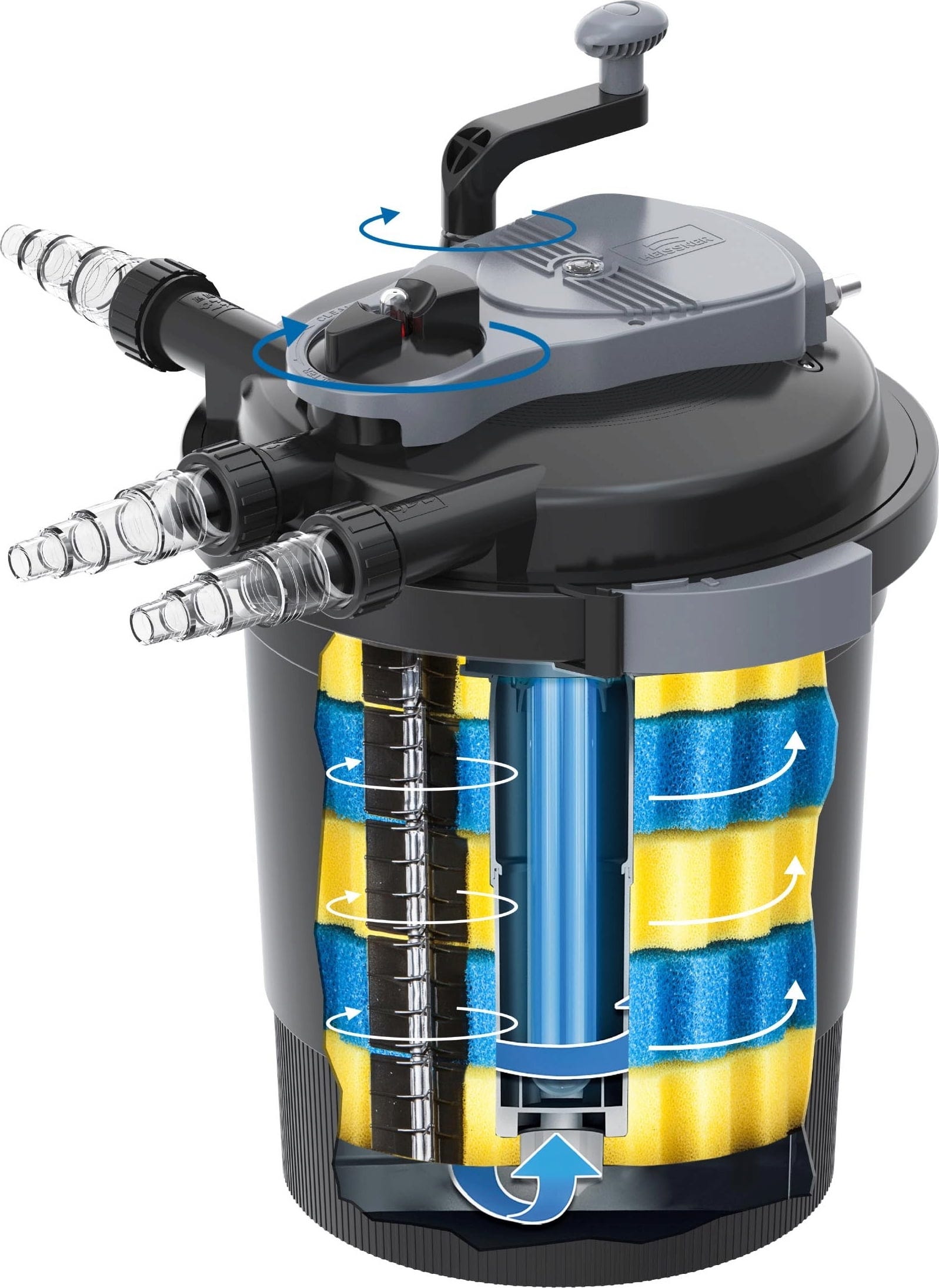 • Filtro a pressione con chiarificatore UVC (24 W) e funzione di controlavaggio