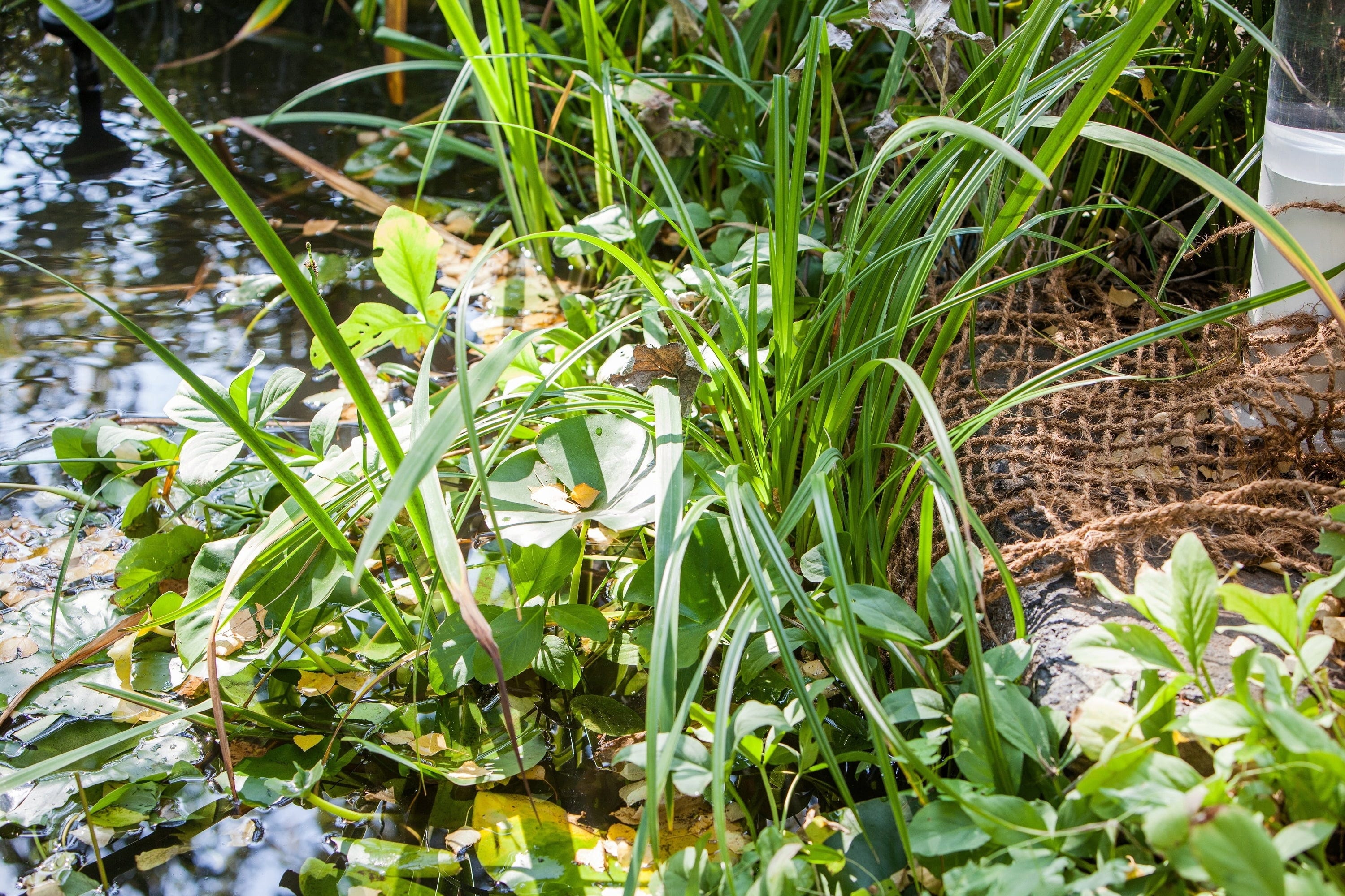 De installatie aan de oeverrand is eenvoudig door het vastzetten met stenen of speciale oeverprofielen, waardoor binnen korte tijd een gesloten, groene randzone ontstaat.