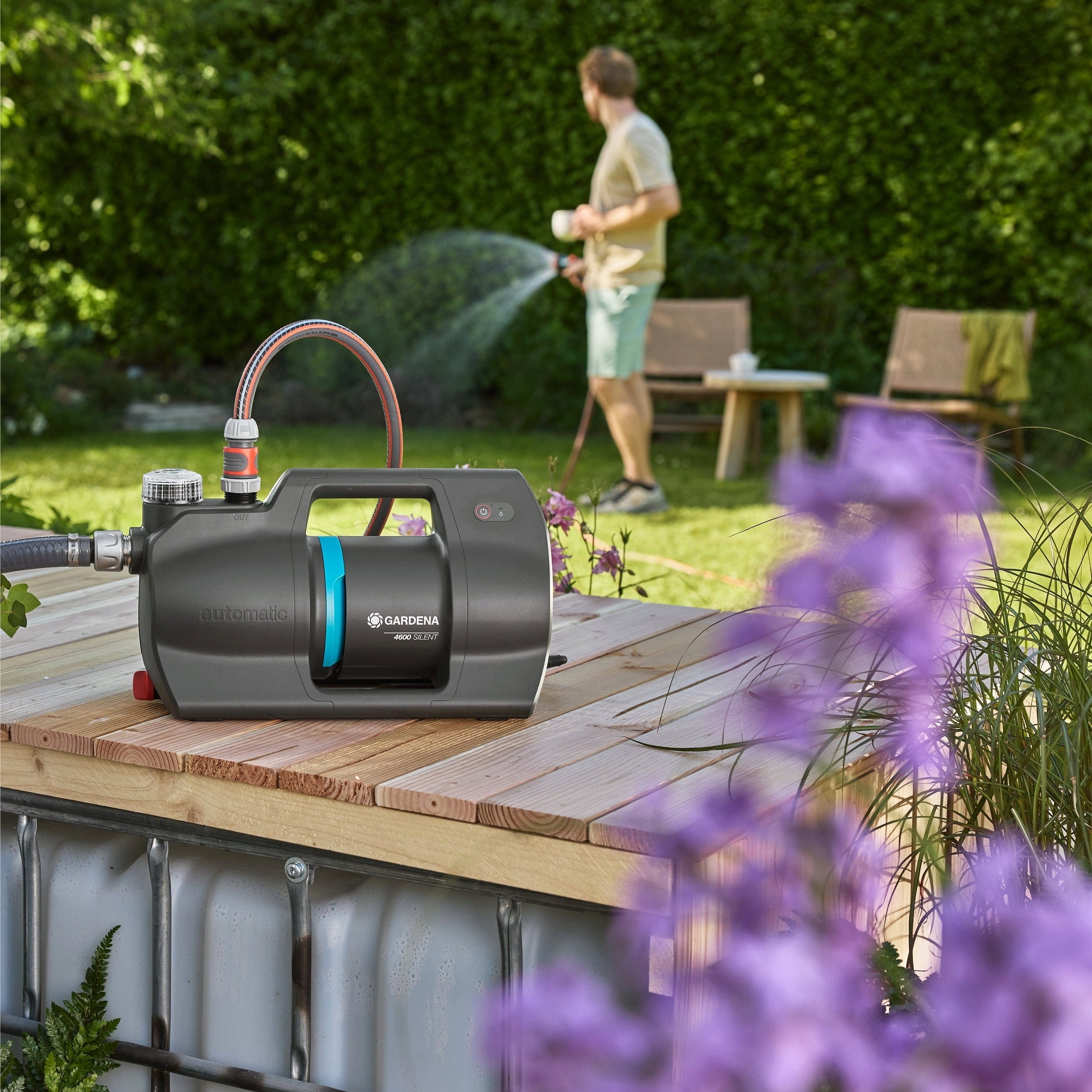 De Huis- & Tuinautomaat 4600 Silent van GARDENA is je slimme partner voor een geautomatiseerde watervoorziening. Het systeem detecteert automatisch wanneer er water nodig is en levert – handmatig of via externe aansturing – precies de juiste druk voor je planten. Dankzij de innovatieve Silent-technologie werkt het apparaat zo stil dat je het zelfs tijdens zwoele zomeravonden probleemloos kunt laten draaien, met een geluidsniveau dat op enkele meters afstand nauwelijks hoorbaar is.