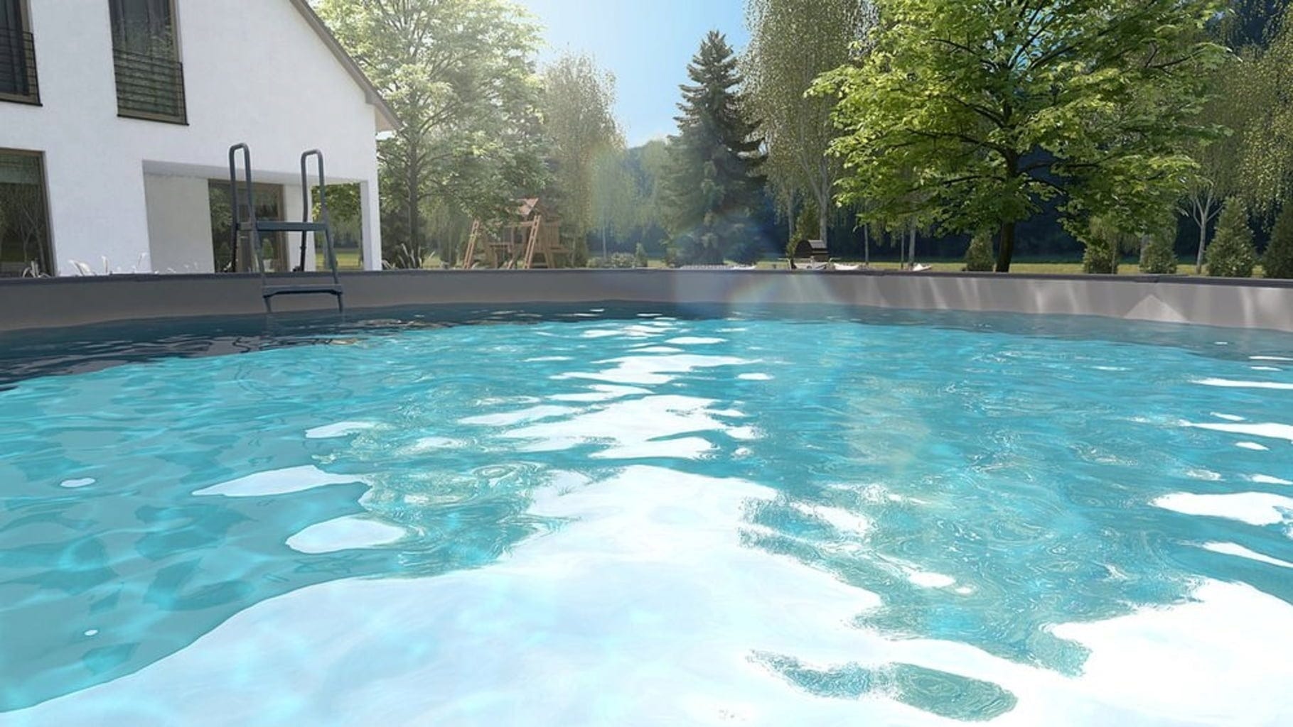Montaż basenu w ziemi jest możliwy częściowo lub całkowicie. (W tym celu niezbędne jest zastosowanie ochrony przed naciskiem!)