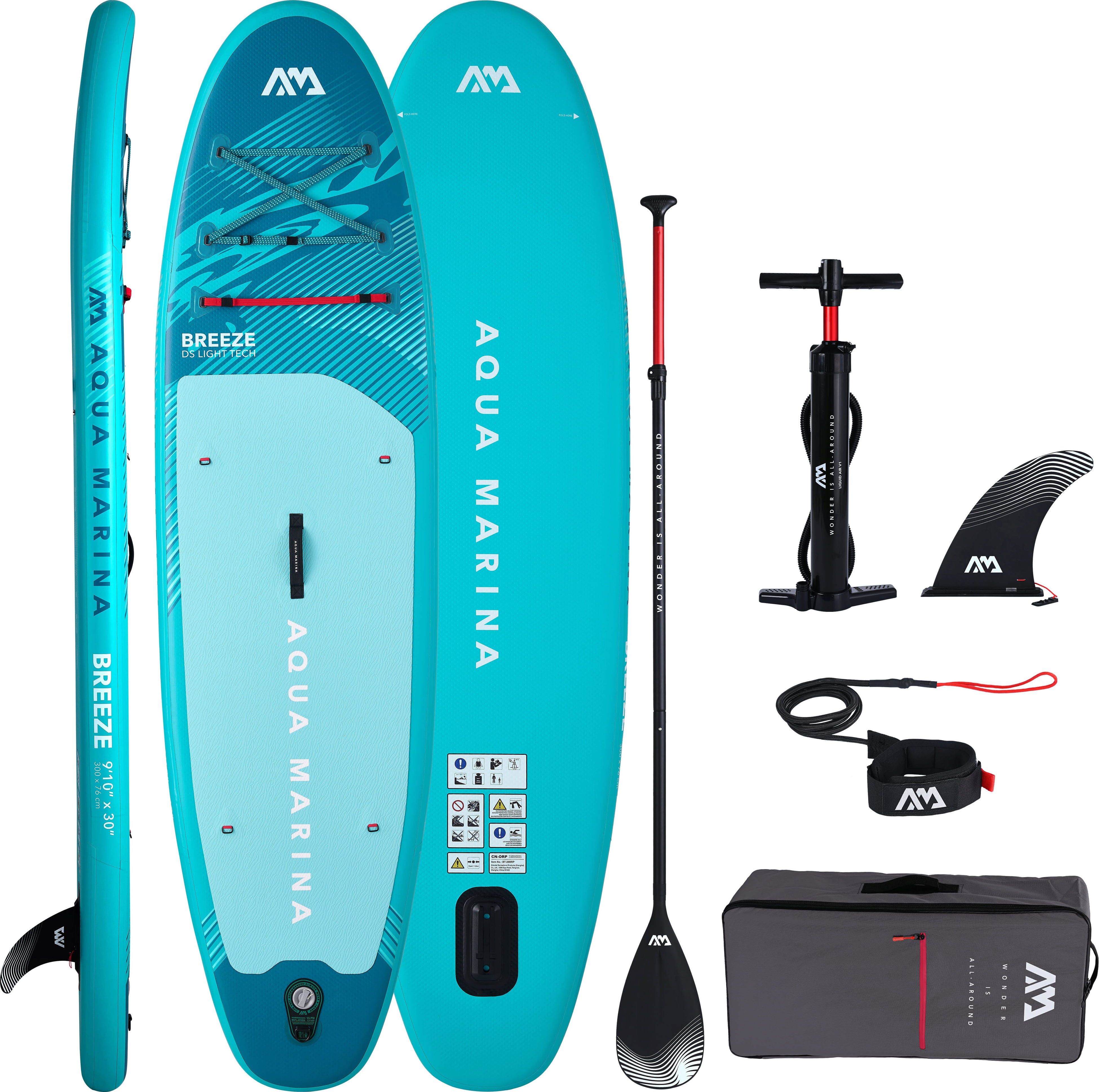 SUP Board Breeze com Sports III paddle (desmontável), bomba Double-Action Liquid Air V1, quilha Slide-In, leash de segurança, mochila de transporte