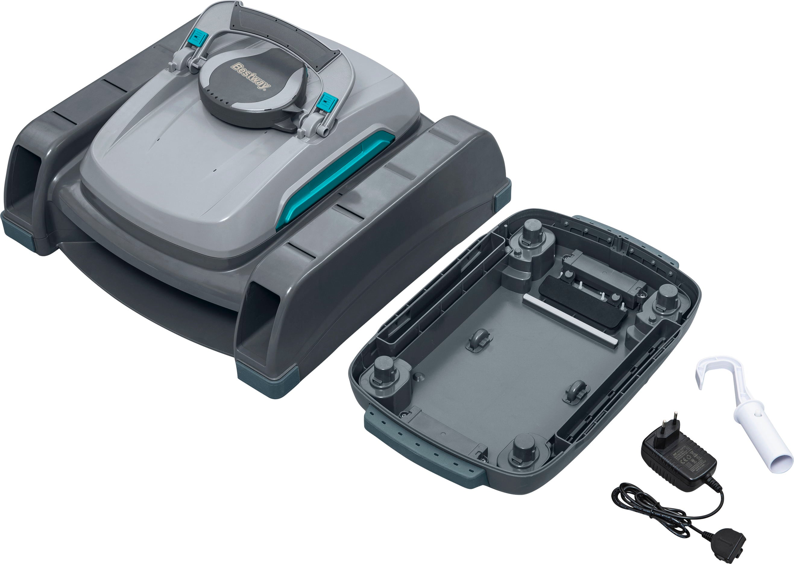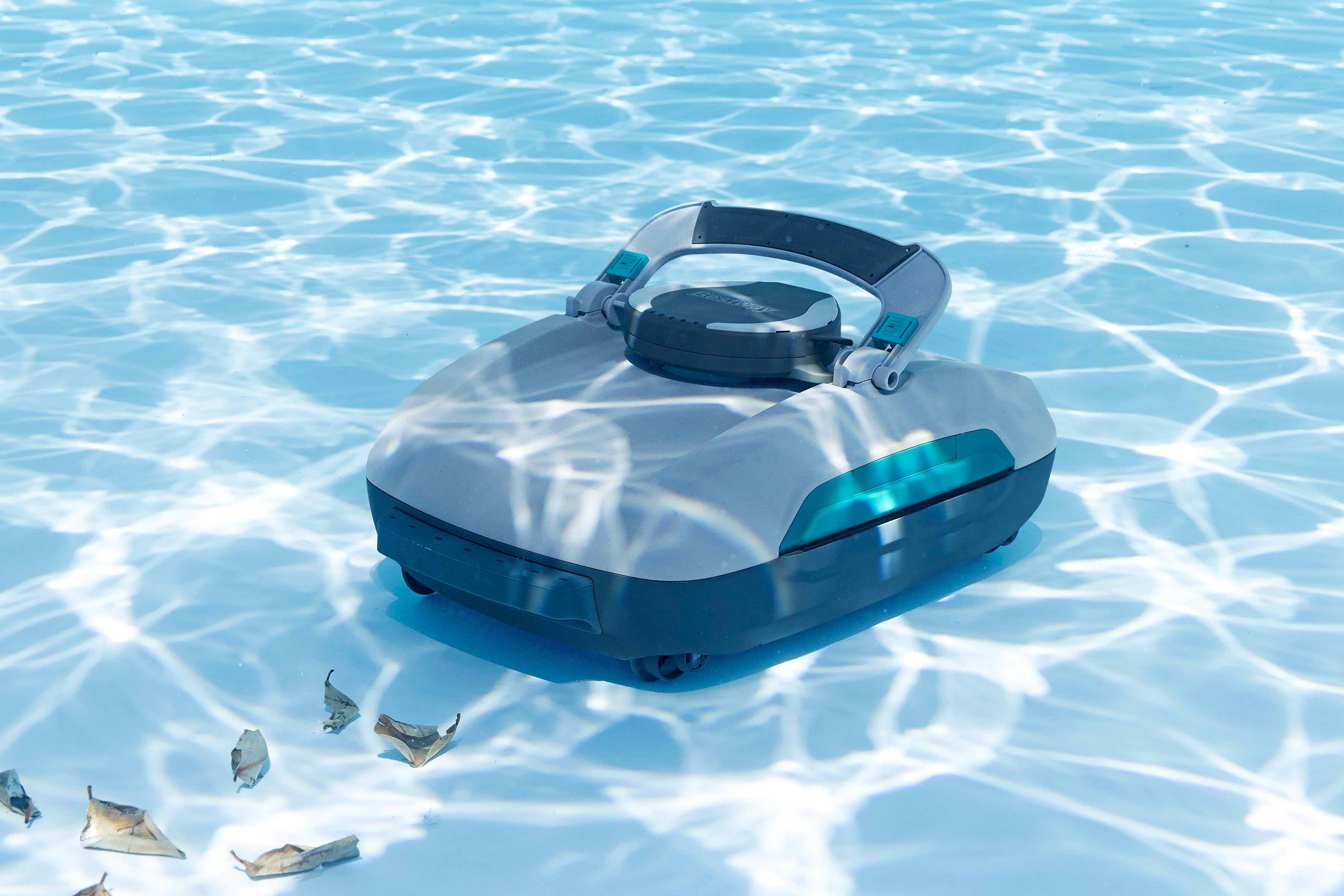 O sistema inteligente de rodas com propulsão a jato garante uma navegação eficiente, enquanto o design sem fios permite máxima liberdade de movimento. Graças à função automática de estacionamento em caso de bateria fraca e aos depósitos de sujidade de fácil limpeza, o robô de piscina é especialmente cómodo de utilizar.