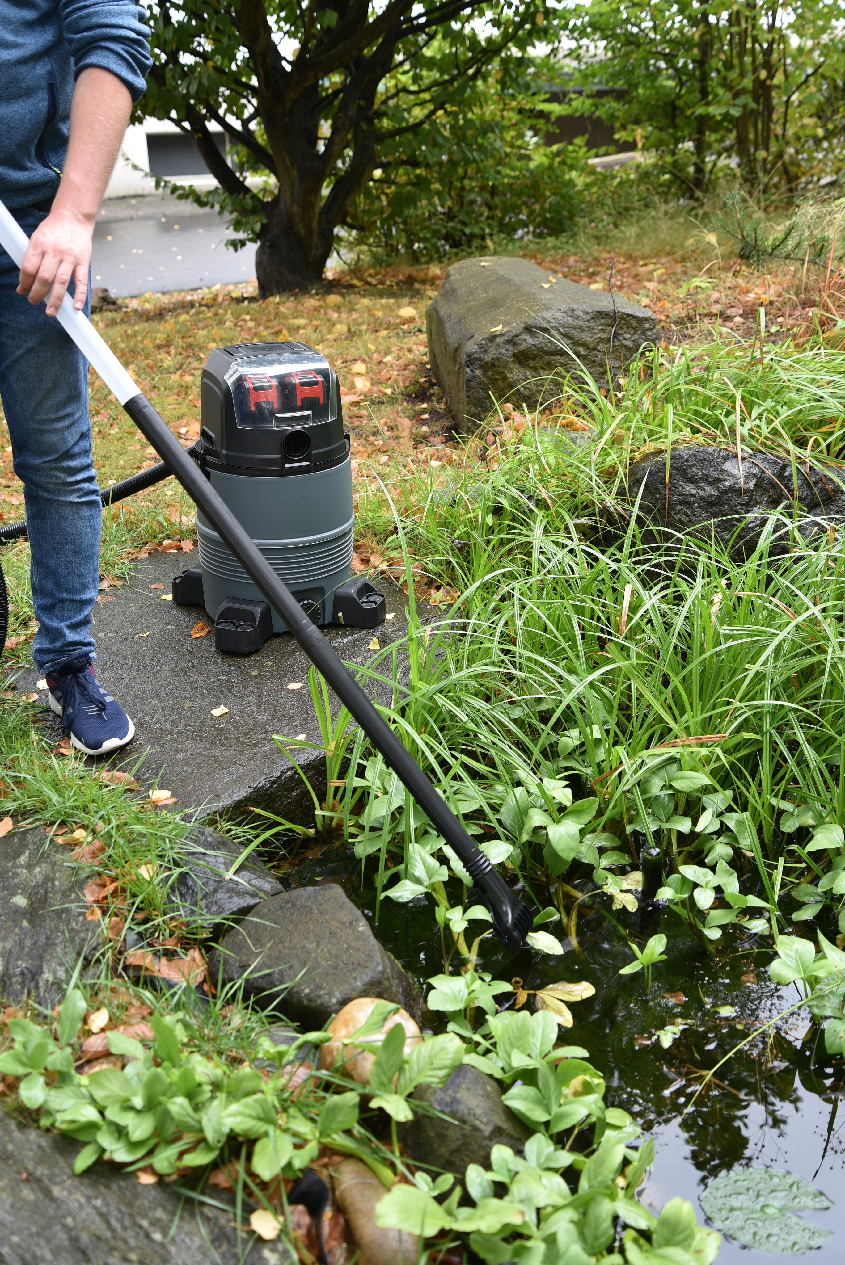 O aspirador de lodo para lago a bateria Power X-Change da HEISSNER oferece máxima flexibilidade na limpeza de pequenos lagos, piscinas e piscinas insufláveis – totalmente sem cabos incómodos. O equipamento destaca-se como um versátil aspirador para líquidos e sólidos com dois modos de funcionamento: o modo automático permite, graças a uma função inteligente de autoesvaziamento, um tempo de funcionamento até 60 minutos, enquanto o modo permanente garante uma potência de sucção constante durante até 30 minutos. Uma prática pega de transporte, o compartimento de bateria protegido e o suporte integrado para acessórios asseguram um manuseamento confortável e uma arrumação organizada.
