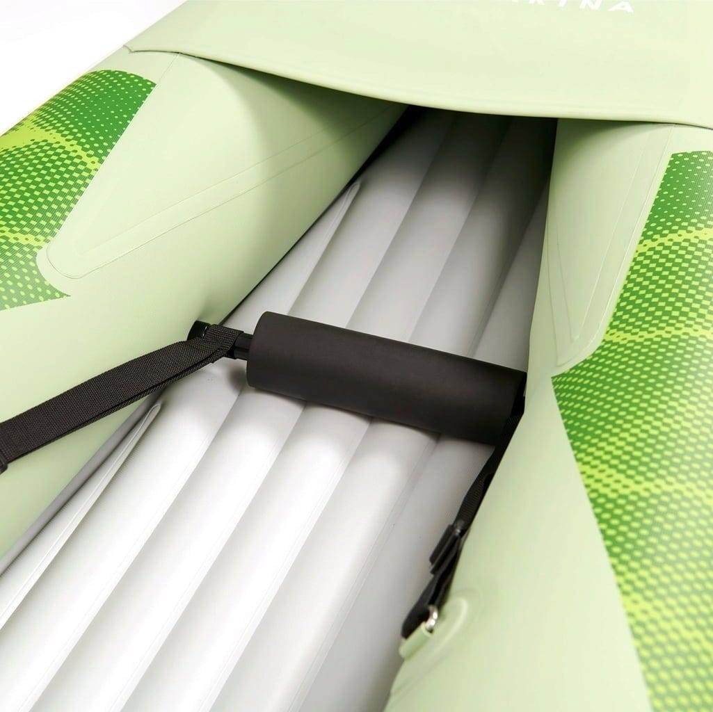 Cu caiacul Betta pentru 2 persoane poți explora lacuri, râuri și ape costiere împreună, într-un mod nou și intens. Barca compactă din material PVC durabil, multistratificat, este formată din trei camere de aer gonflabile. De asemenea, scaunele incluse sunt gonflabile și pot fi ajustate conform nevoilor individuale datorită inelelor D.