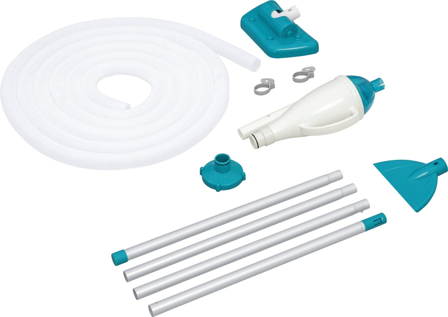 Conținut: Aspirator pentru piscină cu 2 accesorii diferite, 2 adaptoare diferite pentru conectare, furtun (Ø 32 mm / 600 cm lungime)