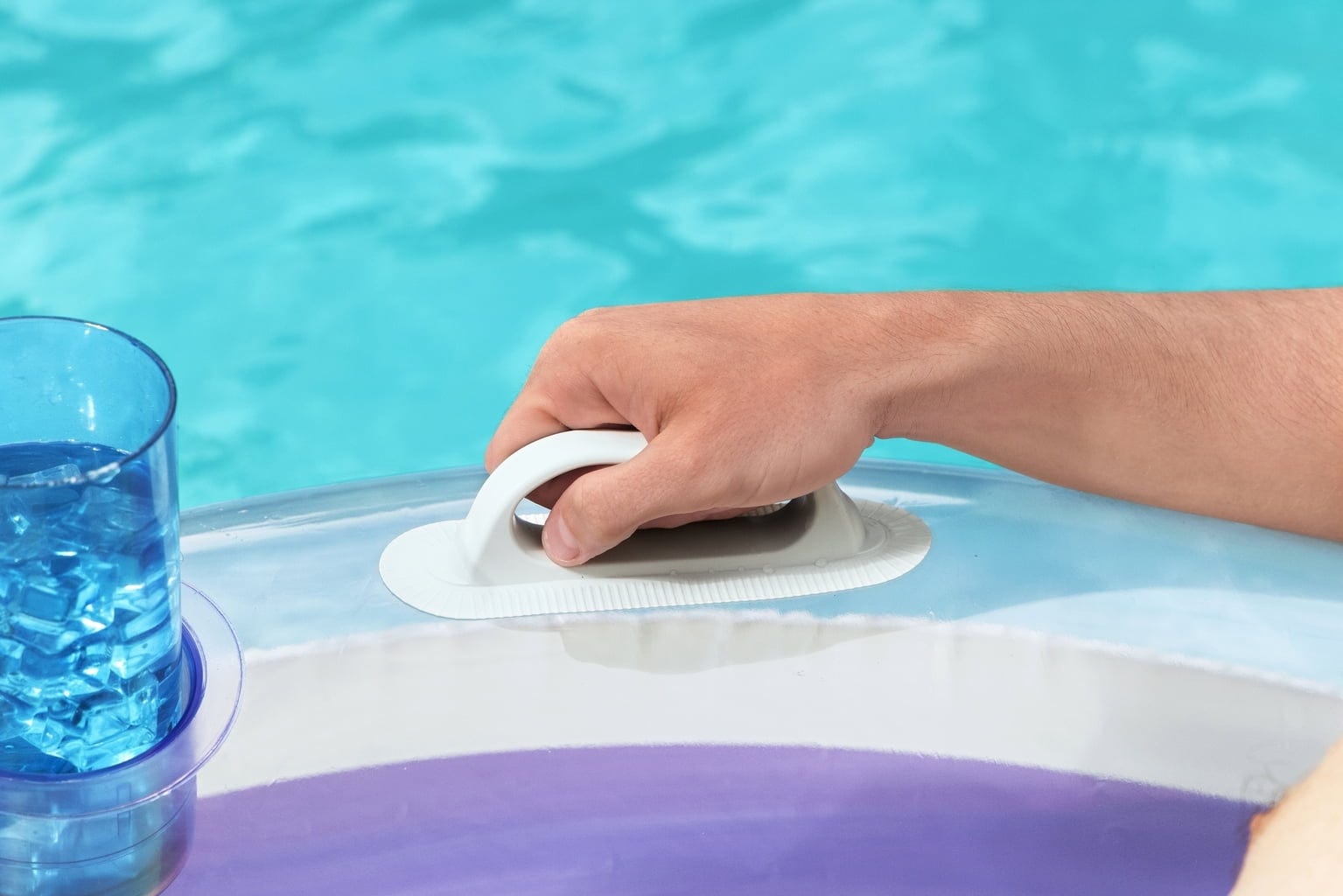 Pentru a vă putea dedica complet relaxării, mânerele robuste oferă siguranță și stabilitate. Datorită suporturilor pentru băuturi integrate, aveți răcoritoarele mereu la îndemână. Fie că sunteți la piscină, la lac sau la mare – cu acest colac de înot împărtășiți momente de neuitat și savurați vara la maximum.