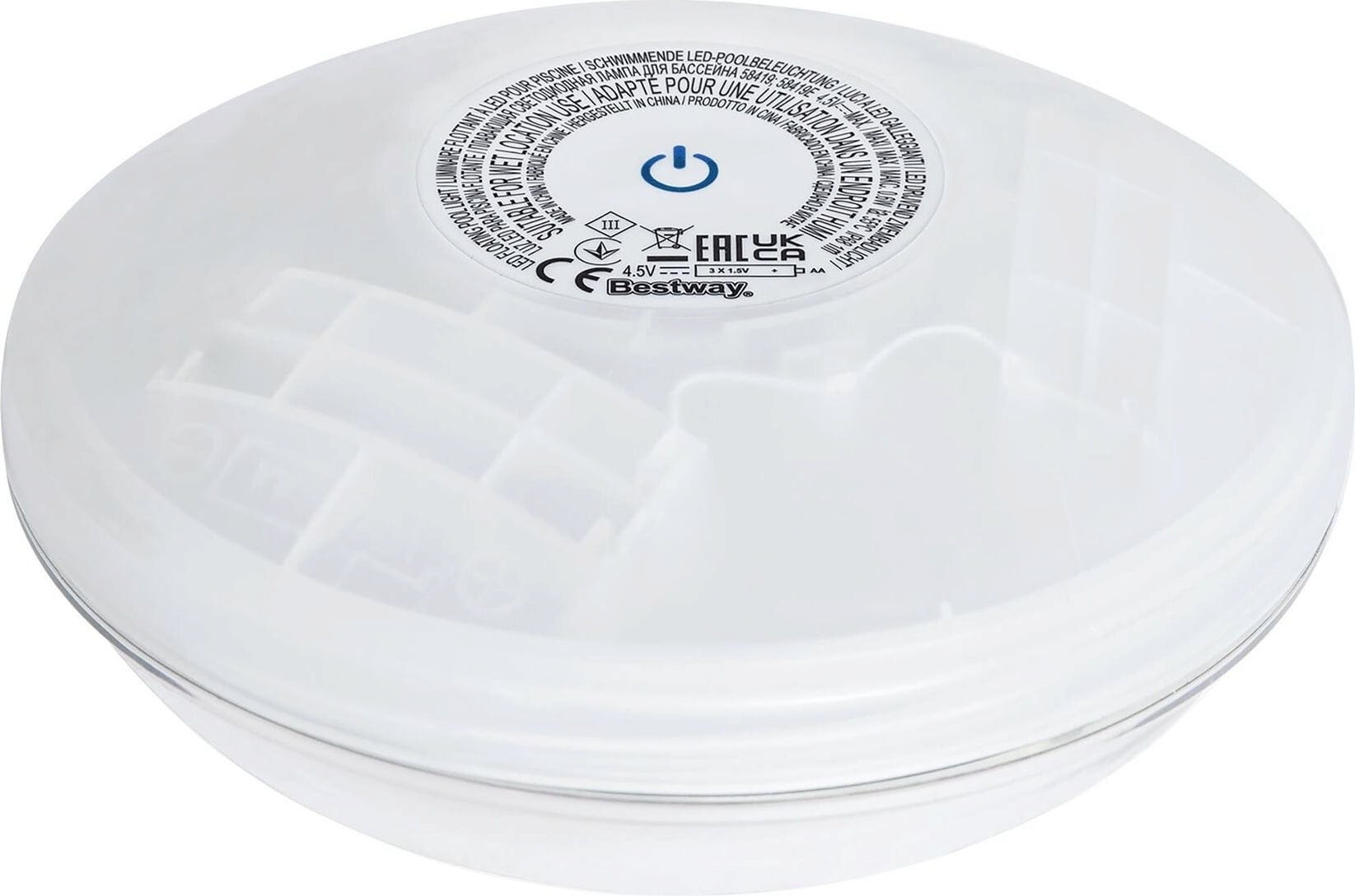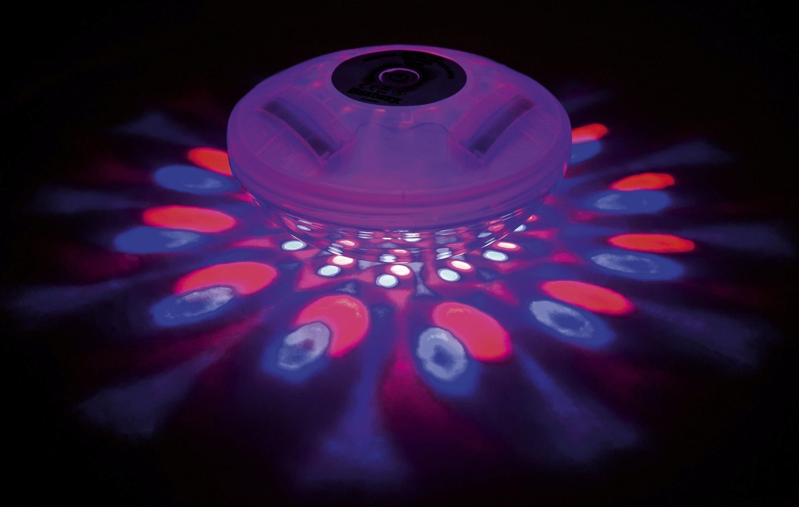 Lampa plutitoare, LED, cu certificare IP-67 de la Bestway îți conferă piscinei un ambient plin de culoare datorită celor patru LED-uri puternice! Cu cele șapte programe de iluminare diferite, poți să variezi atmosfera oricând – de la tranziții line de culoare până la accente puternice.