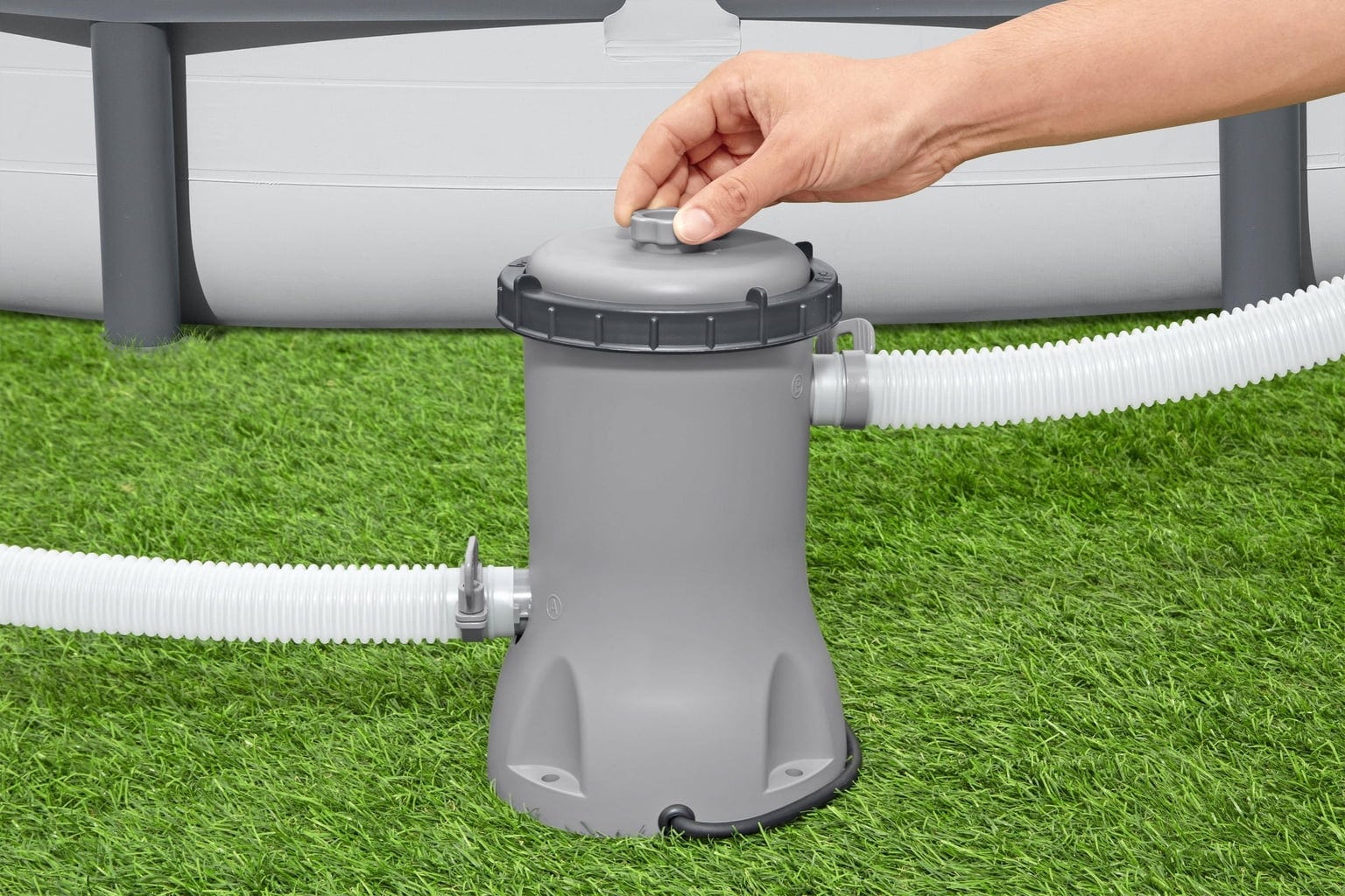 Pentru a te putea apuca imediat, pompa de filtrare vine și cu un cartuș de filtrare de mărimea 2 inclus. Mai simplu de atât nu se poate, nu-i așa? Cu pompa de filtrare Bestway investești într-o distracție neîntreruptă în apă și într-o apă limpidă – pentru o vară perfectă!