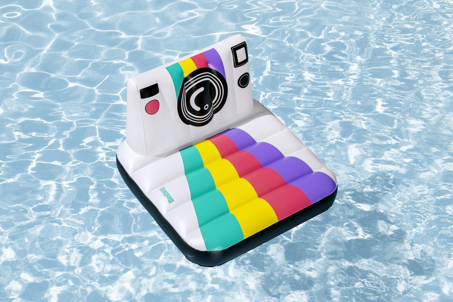 Cu salteaua gonflabilă Pose 'n Float, piscina ta devine scena unor momente de neuitat. Acest model colorat, cu design modern de cameră, nu este doar un punct de atracție, ci și locul perfect pentru a-ți prezenta cele mai bune poziții.