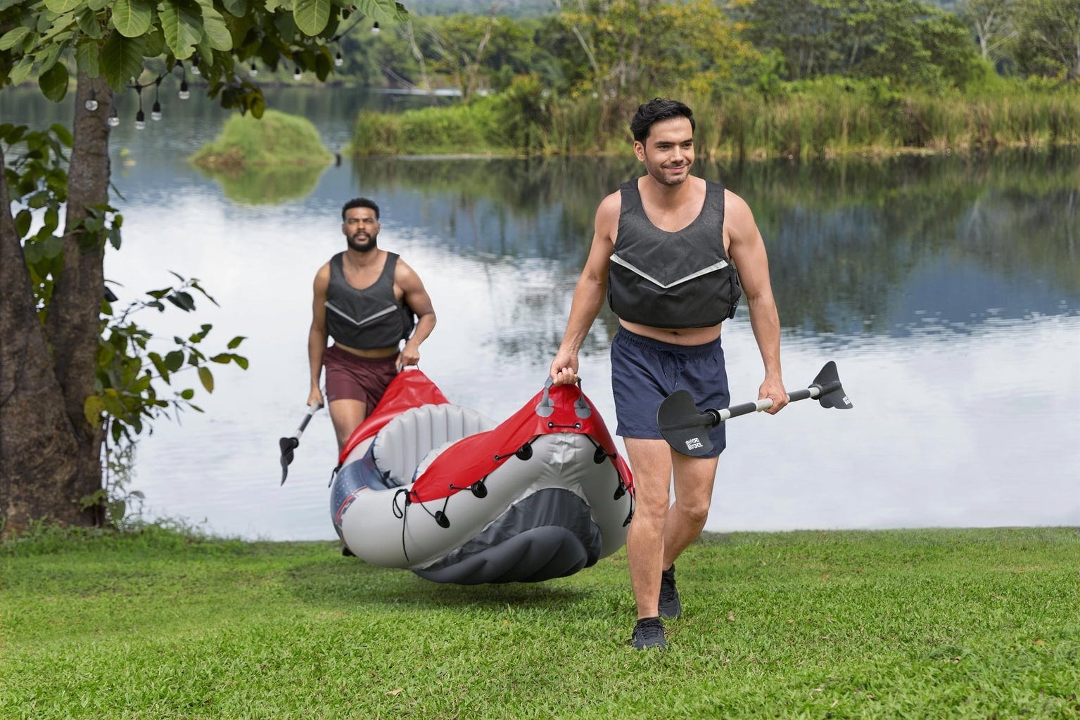 Cu setul Bestway Hydro Force Kajak-Set Rapid poți trăi aventuri distractive pe apă! Kajakul oferă, cu lungimea sa de peste 3 metri, suficient spațiu pentru 2 persoane, iar datorită scaunelor gonflabile, te vei așeza foarte confortabil, chiar și în turele mai lungi. Corzile de prindere și mânerele de transport fac intrarea și ieșirea din apă o joacă de copii, iar dacă aveți nevoie de o pauză, puteți să trageți la mal și să vă bucurați de priveliște!