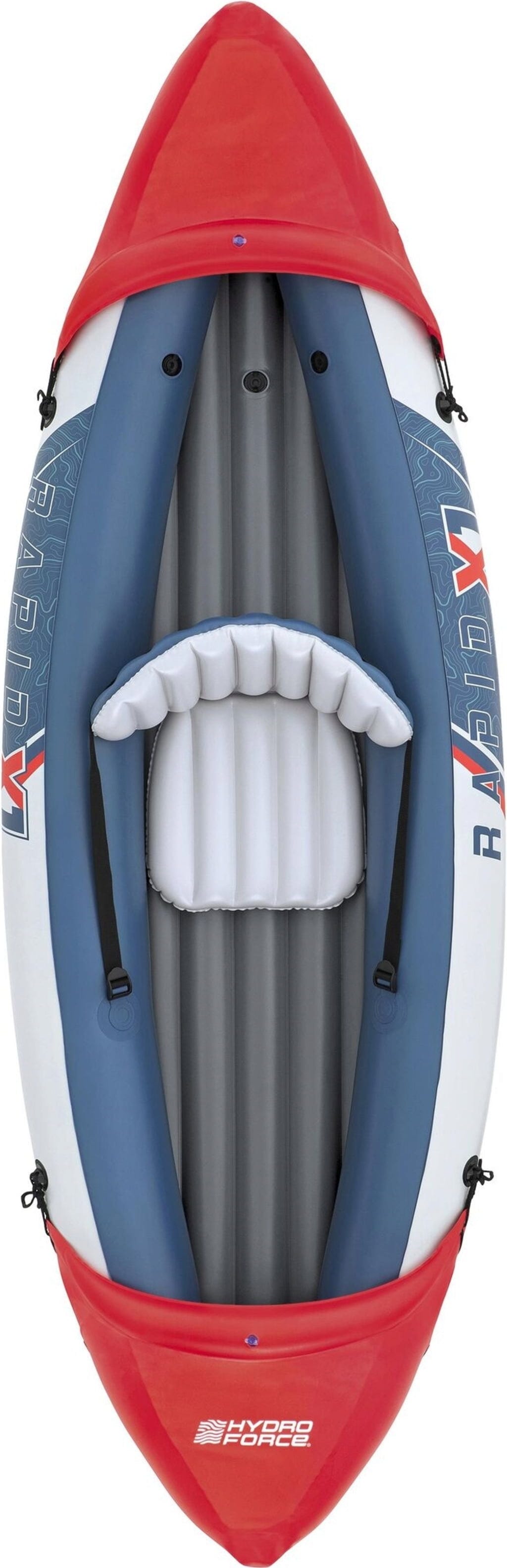 Cu Bestway Hydro Force® Rapid X1, te poți lansa fără stres în următoarea ta aventură pe apă! Datorită designului său lat, kajakul este extrem de sigur și stabil pe apă, făcându-l însoțitorul ideal pe lacuri și râuri. Materialul rezistent Inflata-Shield™ asigură robustitatea necesară, în timp ce cockpitul deschis și scaunul reglabil îți oferă libertate de mișcare și confort deplin.