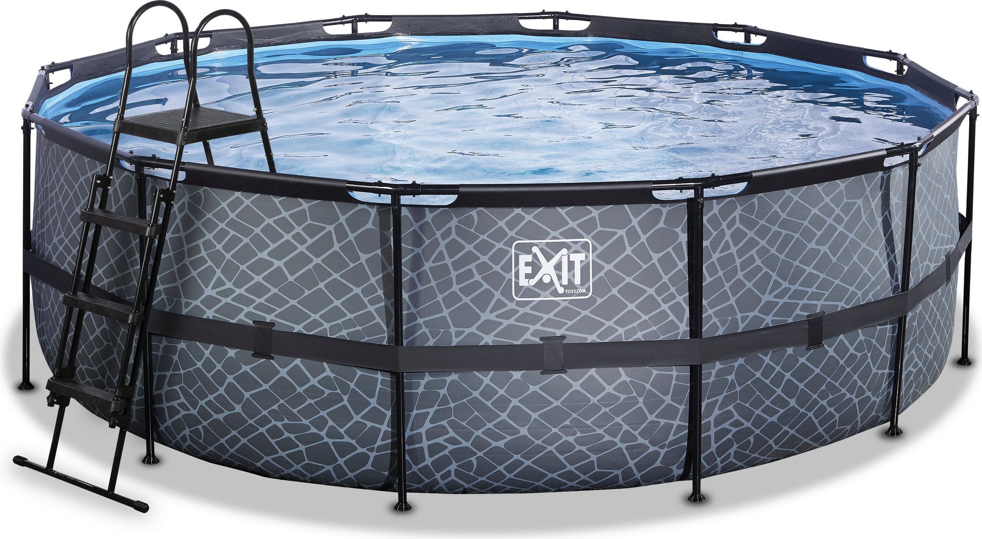 Piscina cu cadru Ø 427 x 122 cm este o piscină rotundă disponibilă în două culori diferite. Această piscină este echipată cu o pompă de filtrare și o scară pentru piscină. Pompa de filtrare menține apa în mișcare, asigurând apă curată și limpezită. Piscina este compusă dintr-un cadru din oțel acoperit cu pulbere care asigură stabilitate. Datorită dimensiunii sale, piscina poate găzdui până la 7 persoane. Cu piscina de înaltă calitate de la Exit, vei trăi cu siguranță cele mai minunate aventuri acvatice în propria ta grădină!