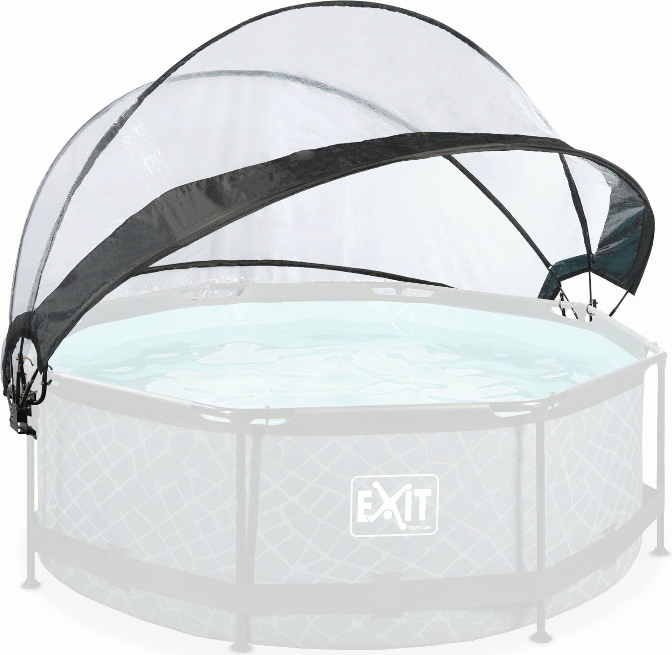 Prelata nu este doar pentru piscinele EXIT, ci este potrivită și pentru multe alte piscine cu cadru de la alți producători, cu un diametru de 240 până la 255 cm. Este important ca piscina să aibă un număr par de picioare cu un diametru de maximum 40 milimetri și bara superioară să fie rotundă și nu mai groasă de 50 milimetri. Odată ce aceste condiții sunt îndeplinite, prelata se potrivește perfect pe piscina ta, transformând-o într-un bazin acoperit confortabil.