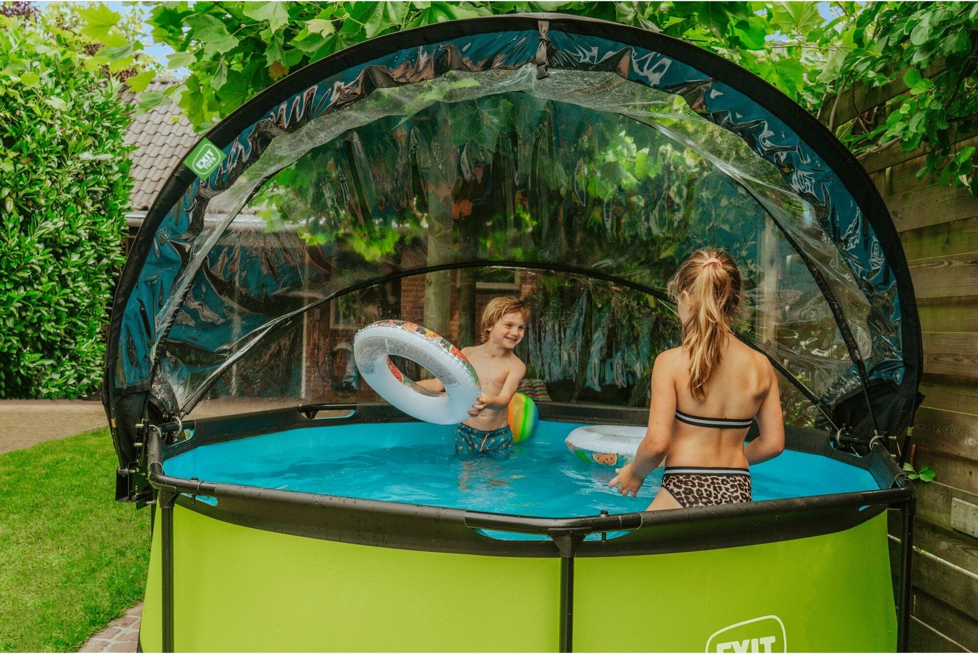Prelata EXIT pentru piscină este completarea perfectă pentru piscina ta cu cadru, dacă vrei să o folosești și pe timp nefavorabil. Se montează rapid și ușor și este potrivită și pentru multe alte piscine. Cu această prelată multifuncțională, piscina ta va deveni imediat un bazin acoperit. În plus, asigură o încălzire durabilă a apei și protejează împotriva murdăriei și impurităților. Benzile incluse oferă o fixare sigură pe piscina ta, garantând astfel ore întregi de distracție la înot pentru tine și familia ta.