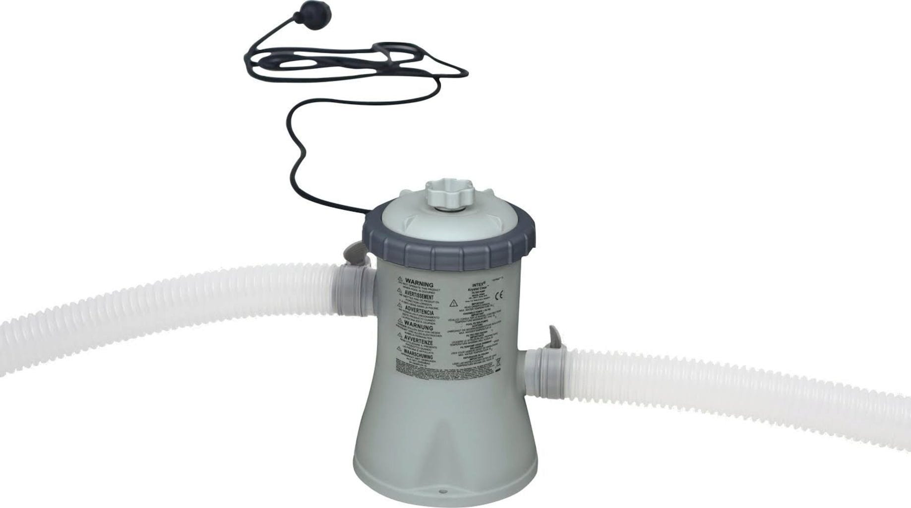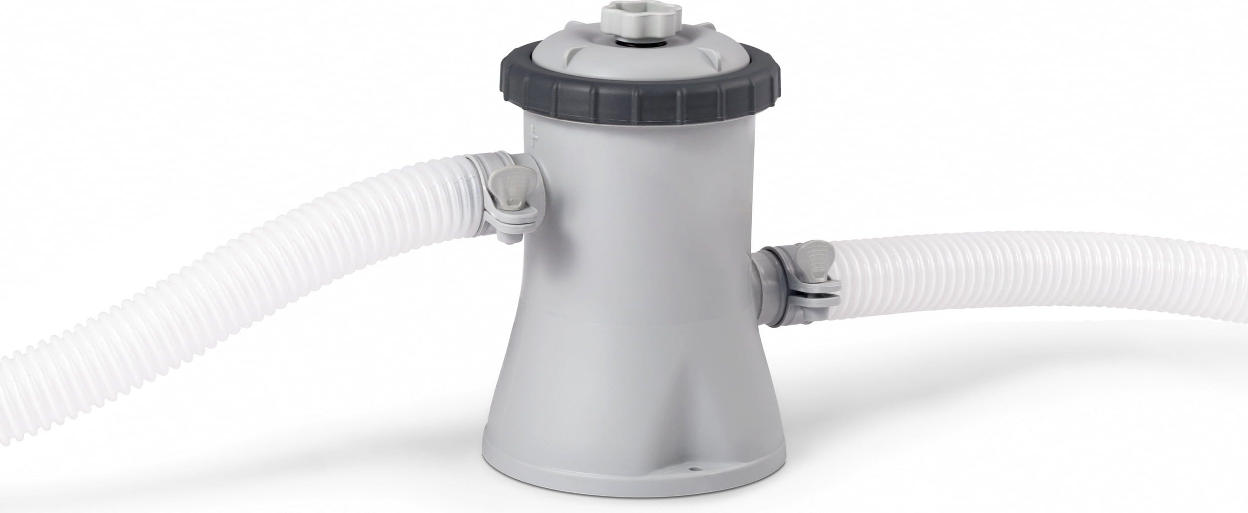 Conexiunea la toate piscinele standard Intex cu un racord de furtun Ø 32 mm se face foarte ușor. Trecerea necesară, grila de aspirație, duza de intrare, furtunurile de conectare și clemele de furtun sunt incluse în pachetul de livrare.