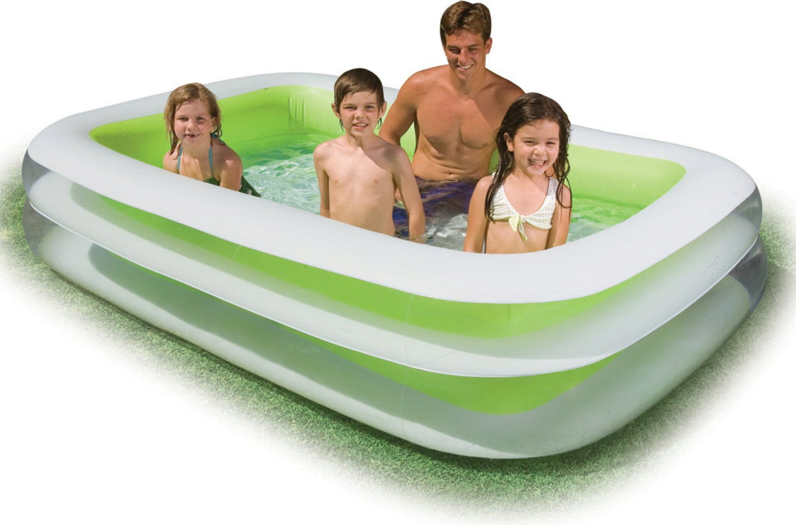 Cu o dimensiune de 262 x 175 x 56 cm, Swim-Center Family Pool - II oferă suficient spațiu pentru distracția în apă. 2 camere de aer mari cu ventil combinat integrat pentru umflare și dezumflare rapidă, conferă stabilitate bazinului. Pereții extra largi au o grosime a materialului de 0,32 mm. Volumul de apă al piscinii este de 749 l la o înălțime de umplere de 37 cm. Swim-Center Family Pool - II este potrivit pentru copii de la 6 ani.