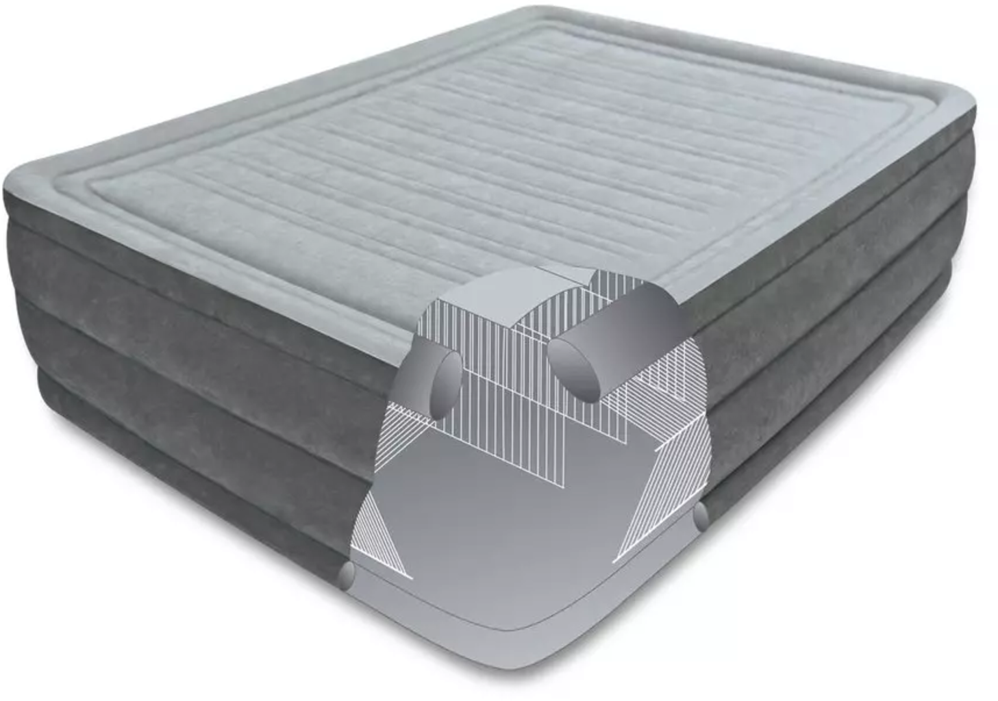 În această saltea gonflabilă, somnul regal este garantat. Tehnologia patentată Fiber-Tech™, o suprafață impermeabilă și catifelată, precum și o bază din vinil puternic asigură un climat de somn plăcut și stabilitate excepțională, făcând această saltea gonflabilă prima alegere pentru cei care apreciază confortul maxim și calitatea excepțională. Asamblarea se face rapid cu pompa de aer integrată de 230V, astfel încât patul este întotdeauna pregătit pentru utilizare rapidă, fie după călătorii lungi, fie la o vizită surpriză. Astfel, ești pregătit pentru orice situație.