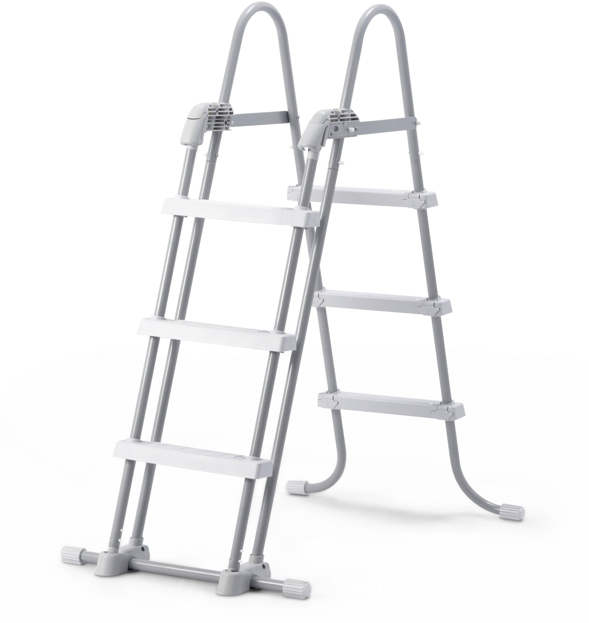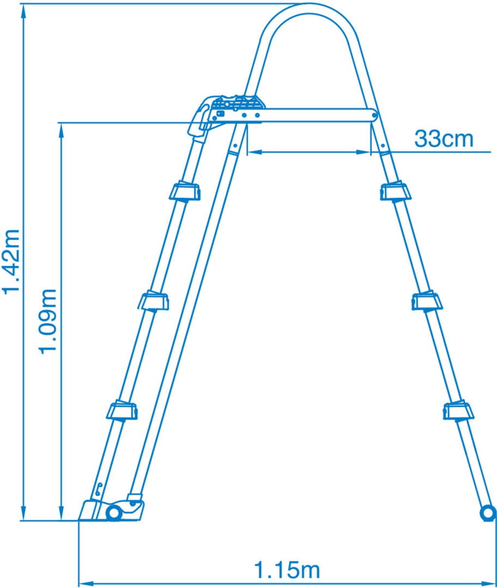 Securitatea împotriva accesului neautorizat al copiilor mici este asigurată de partea exterioară rabatabilă. Treptele scării pot fi ajustate rapid și ușor prin deschiderea celor două închizători rapide. Astfel, copiii mici nu mai pot urca în piscină.