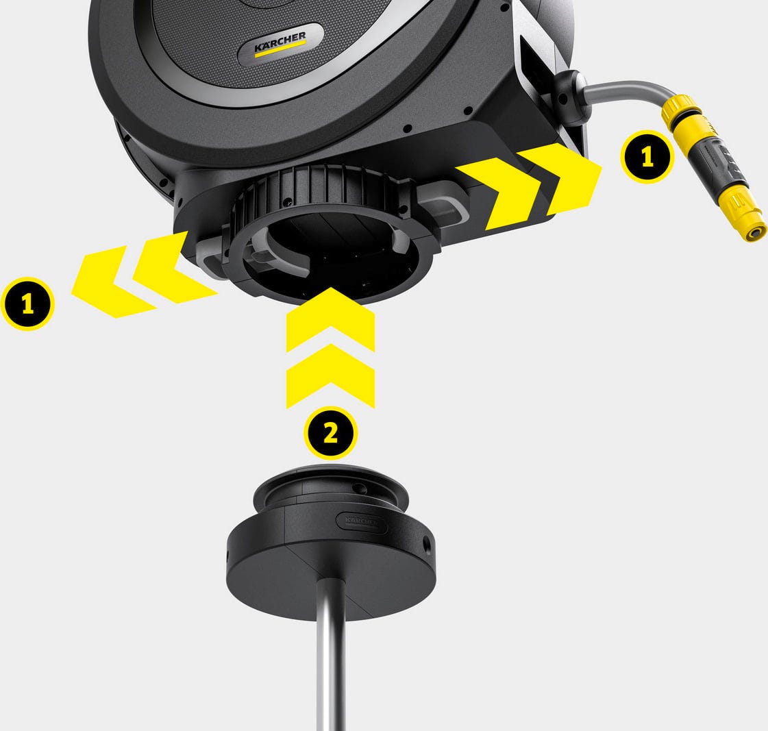În combinație cu o cutie de furtun Kärcher, se creează un sistem de furtun extrem de flexibil în grădină. Cutia montată poate fi rotită la 360°, permițând ghidarea liberă a furtunului în timpul udării. Acest lucru reduce îndoiturile furtunului și facilitează utilizarea unui suport de furtun pentru irigarea grădinilor în jurul straturilor, peluzelor sau zonelor cu plante. Datorită tehnologiei FlexChange, cutia de furtun poate fi montată sau demontată pornind de pe țăruș fără a utiliza unelte. Astfel, suportul de furtun pentru grădină poate fi utilizat exact acolo unde este nevoie de apă.