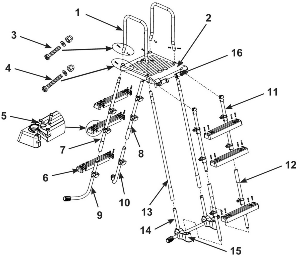 Piese de schimb - Scară de siguranță din țeavă de oțel pentru piscine cu înălțime de 91 - 107 cm