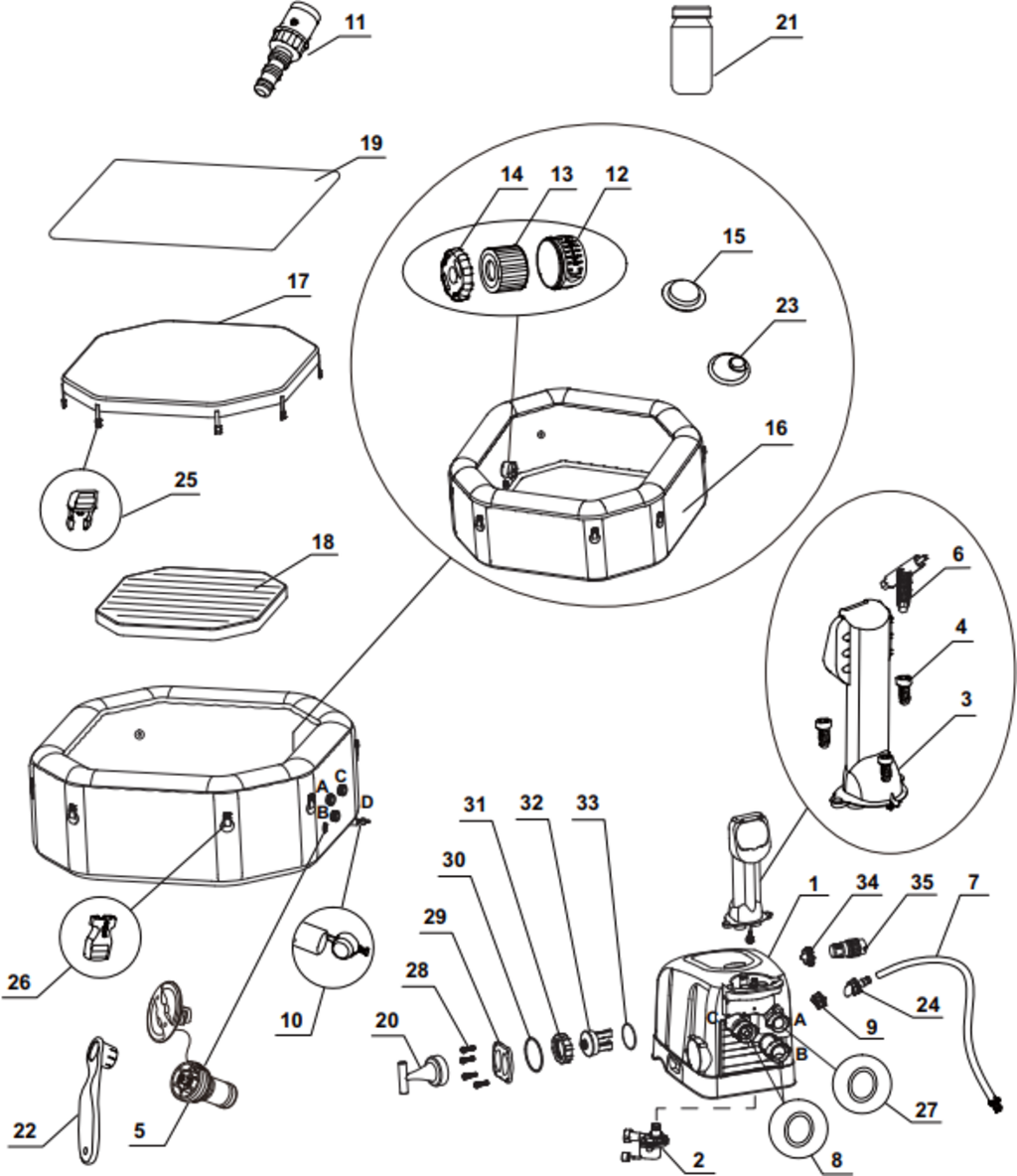 piese de schimb Intex Whirlpool Pure-Spa Bubble & Jet Octagonal, (25) Cataramă masculină