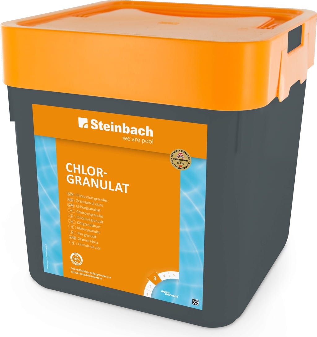 Dizolvă granulatul de clor în apă și, ideal, adaugă-l prin skimmer.