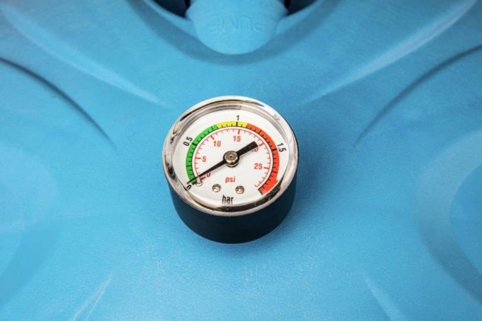 Capacitatea de circulație a sistemului de filtrare este de 5.500 l/h. Instalația este potrivită pentru piscine cu un volum de apă de până la 22.000 l. Pompa autoamorsantă dispune de un prefiltru și un manometru. Funcționează cu o tensiune de 230 V și are o putere de 250 W.