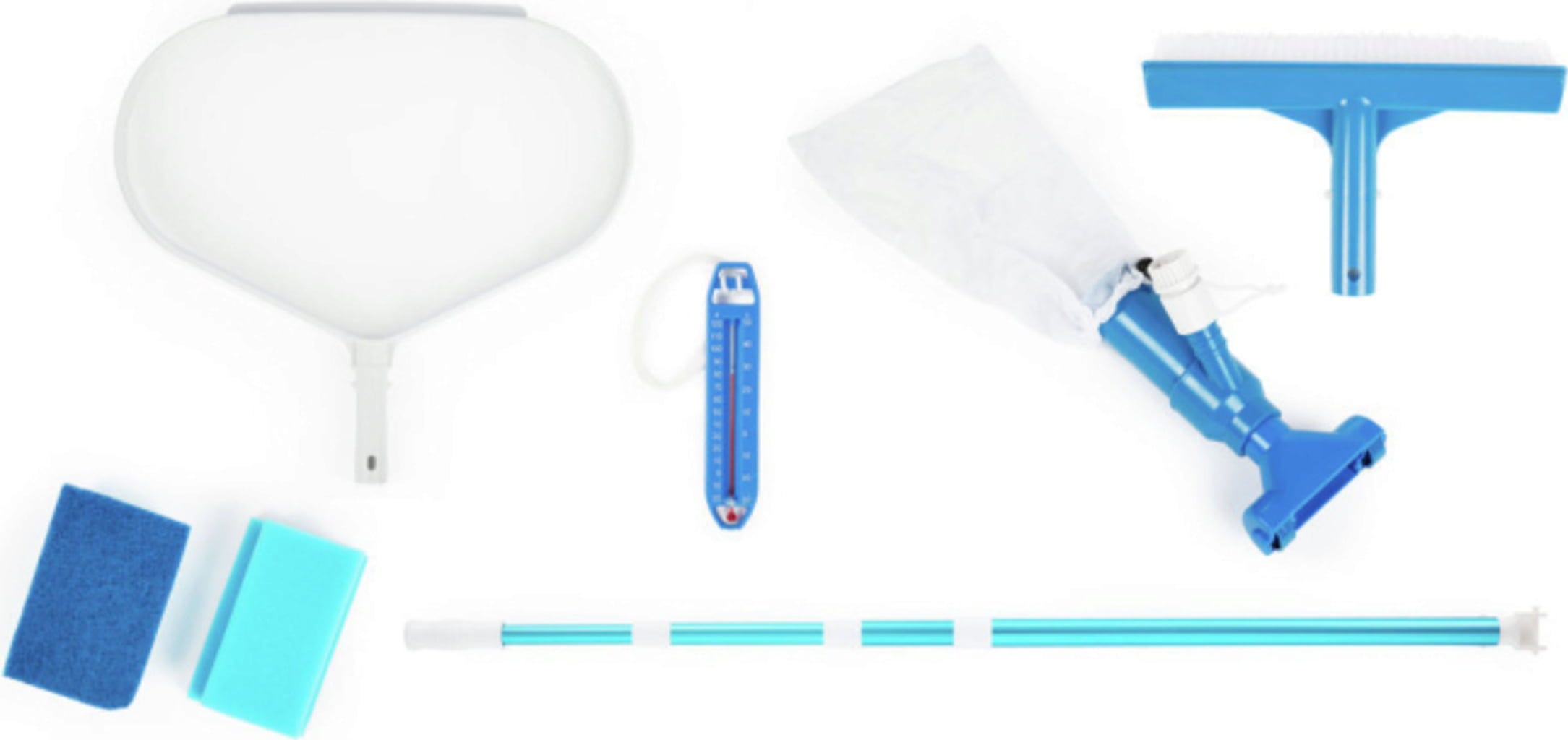 - Set de tratare a apei cu 1 kg granule de clor, 1 kg tablete de clor 200 g cu dizolvare lentă, 7,5 kg granule pH-minus & 5 l algezid 9 % lichid