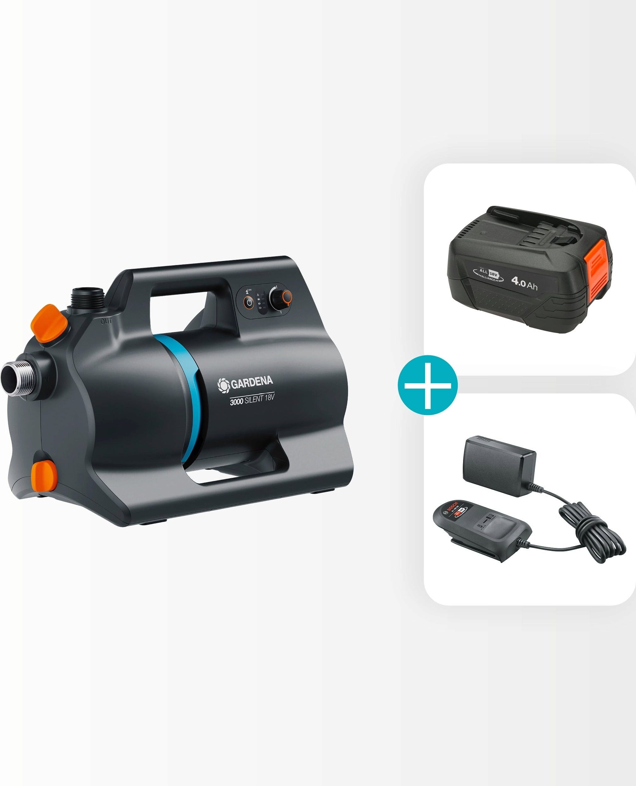 GARDENA Akumulatorska vrtna črpalka 3000 Silent 18V P4A Ready-To-Use Set