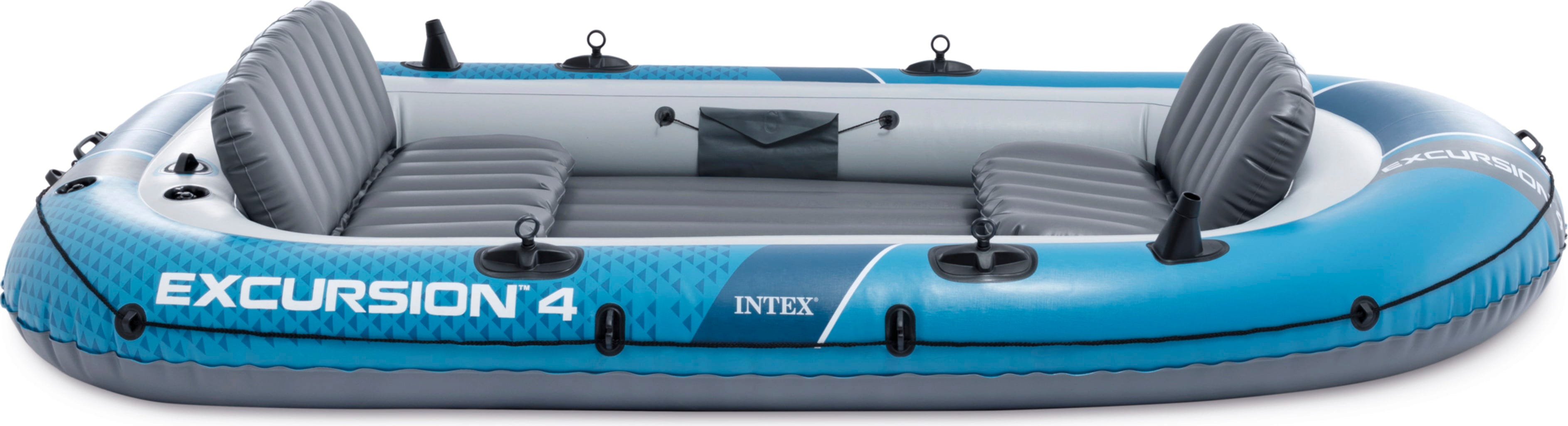 Napihljiv čoln Excursion 4 znamke Intex ponuja do štirim osebam udobno in varno možnost za raziskovanje prostranih jezer ali mirnih rek. Vključena sta dva visokokakovostna aluminijasta vesla in zmogljiva ročna črpalka.