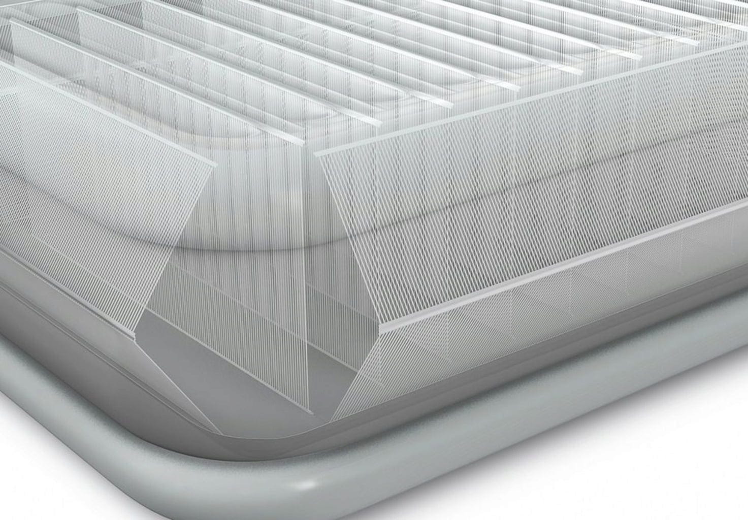 Ta zračna vzmetnica ima preizkušeno kakovostno, vodoodporno, kosmateno zgornjo in stransko steno. Napihovanje je enostavno z vgrajeno električno zračno črpalko. Višina vzmetnice je 56 cm. Priložena je torba za prenašanje za enostavno shranjevanje.