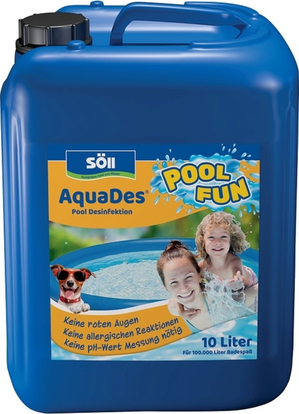 AquaDes är en snabb och enkel vattenrening för plaskpooler och barnbassänger. Den neutrala formulan med låg klorhalt håller vattnet rent på ett tillförlitligt sätt – samtidigt som den motverkar ögonirritation och allergiska reaktioner. Medlet är dessutom ofarligt för trädgårdsväxter, vilket gör att det gamla poolvattnet vid regelbunden vattenbyte kan användas till bevattning.